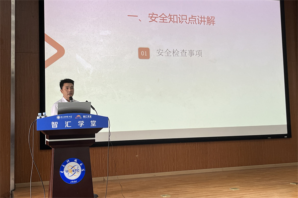 为深入贯彻落实“安全第一、预防为主”的校园安全管理方针,全面提升师生交通安全意识与应急处置能力,5月8日下午,由后勤保障部、教师发展中心、党委学工部、保卫处联合主办,后勤交通运输服务部承办的“文明交通 平安同行”专题培训活动在清水河校区电科院学术报告厅举行。活动特邀成都市交警六分局执法办案大队一级警长冯立、能投国信网约车培训讲师文明担任主讲嘉宾,后勤职工、师生代表近300人参与培训。