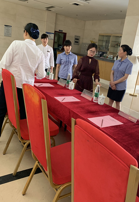 4月25日下午,清水河物业服务部组织全体会议服务人员开展了会议服务技能竞赛初赛。
