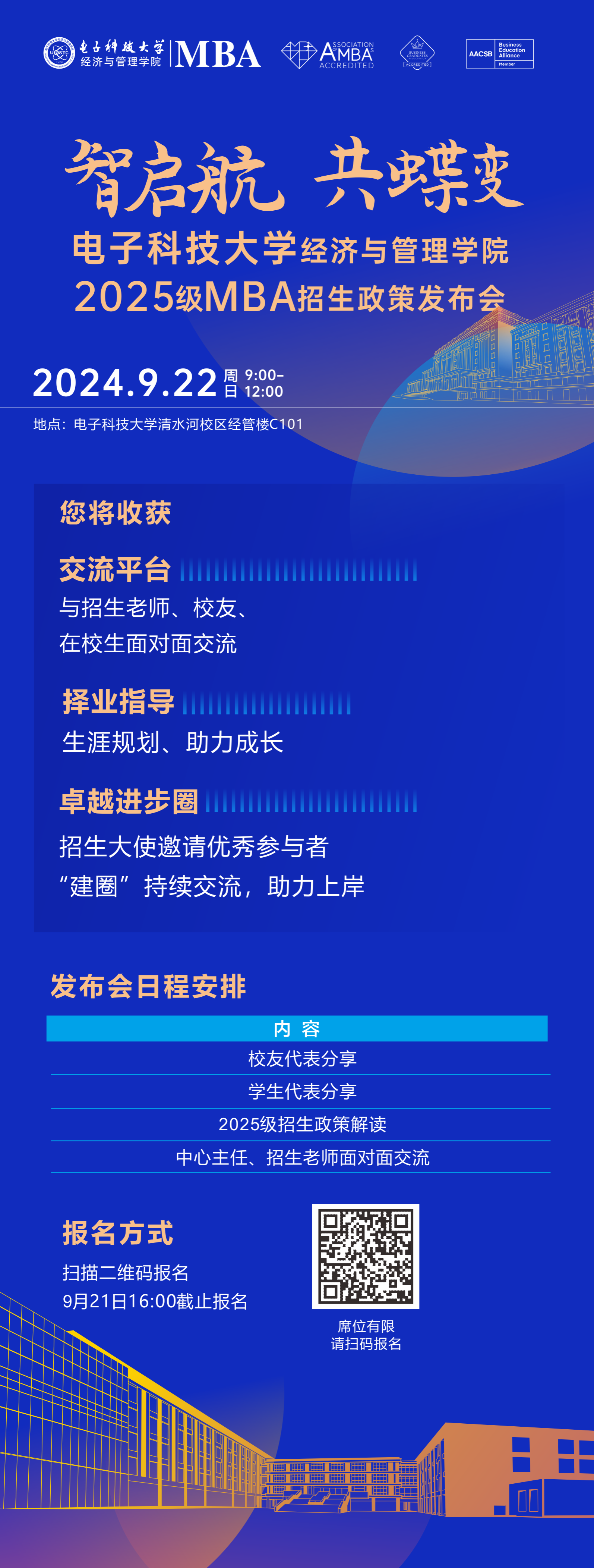 智启航 共蝶变 | 电子科技大学2025级MBA招生政策发布会邀您参加