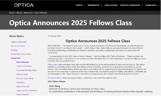 近日,美国光学学会(Optica,原名OSA)公布了2025年新当选会士(Optica Fellow)名单,来自27个国家的121位专家当选,我校信息与通信工程学院王子南教授榜上有名。美国光学学会成立于1916年,是光学领域权威的国际性学术组织;除了光学和光子学领域,还为物理学、生物学、医学、电气工程、通讯、天文学、气象学、材料科学、机械工程和计算等诸多领域的专家学者提供高水准的专业服务。Optica Fellow是美国光学学会授予该领域专...