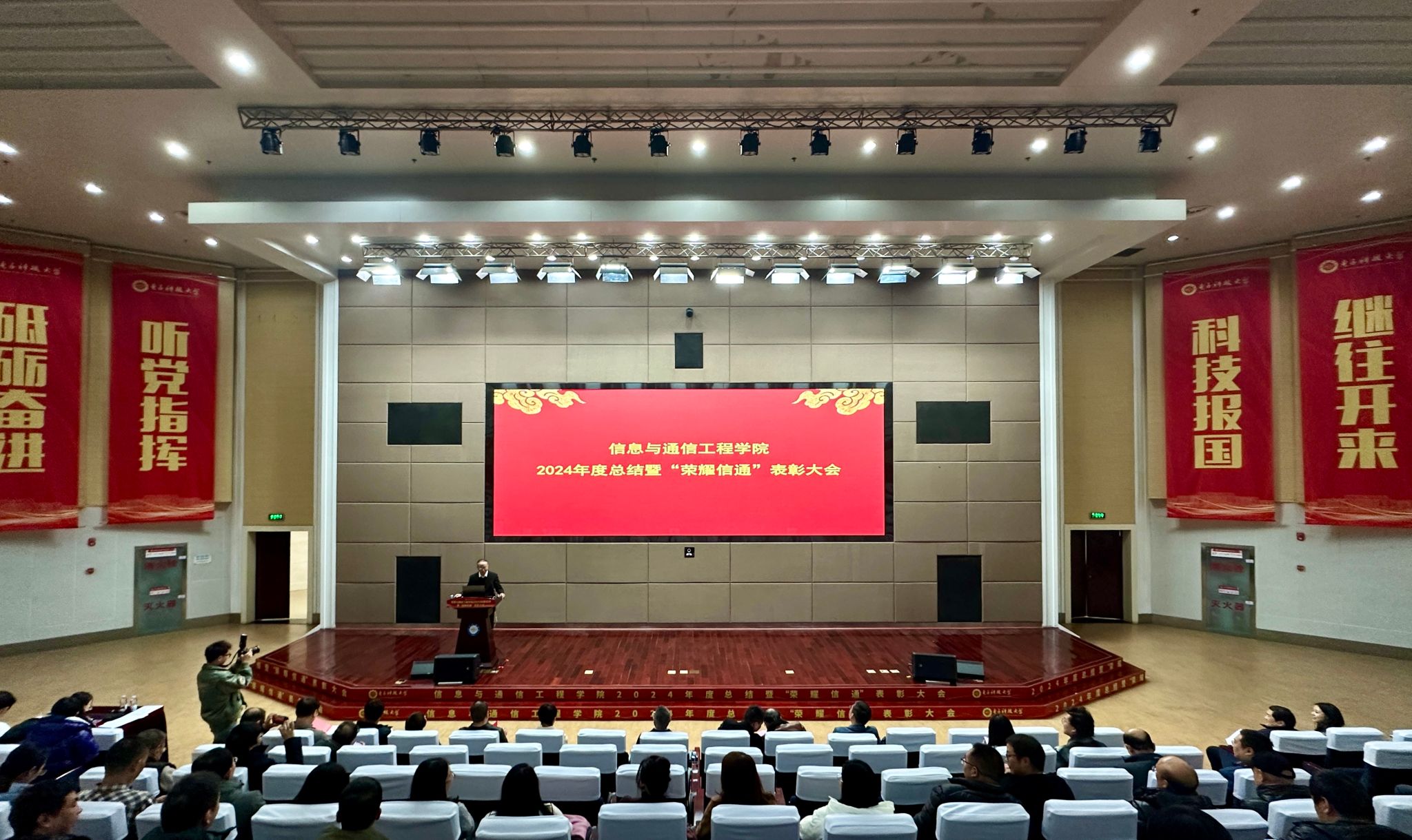 1月15日,信息与通信工程学院2024年度总结暨“荣耀信通”表彰大会在求实厅举行。副校长徐红兵出席大会,学校督导组成员、学院全体领导和教职工参加会议。本次大会分为两个部分,第一部分是学院领导班子述职述廉,由学院党委书记冷甦鹏主持。冷甦鹏围绕政治思想建设、事业发展合力、党风廉政建设和下一步工作思路四个方面代表领导班子做总结陈述。随后,从开展理论学习情况、履职尽责情况和党风廉政情况三个方面进行个人述职。院...
