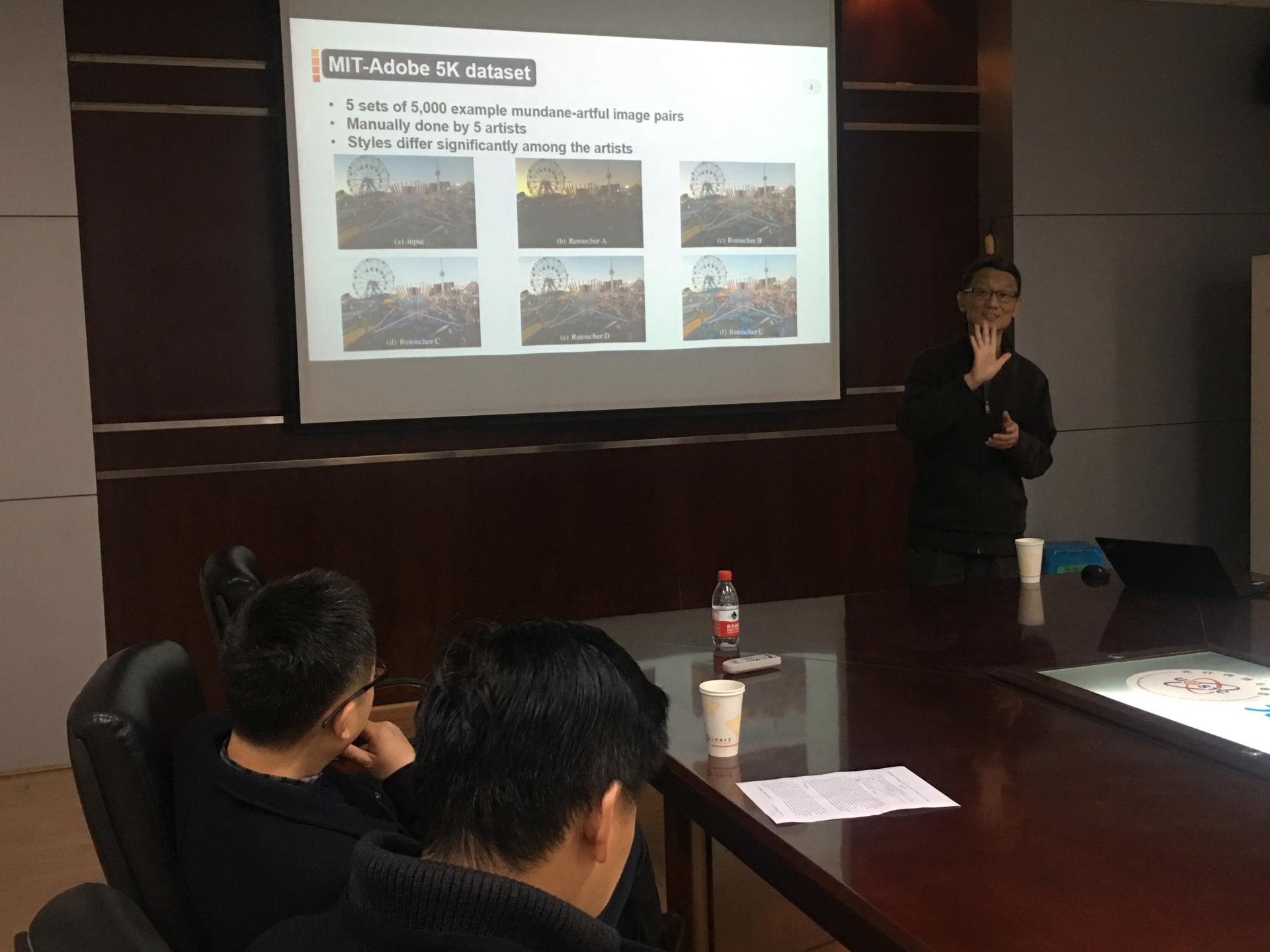 武筱林教授首先介绍了图像艺术化重建的相关背景知识及在手机照片质量提升等场景的应用。使用传统方法人工进行图像艺术化重建需要较强的专业背景并且极其费时费力,普通用户难以使用。先前的图像艺术化重建工作,往往直接运用深度学习,使用有监督学习的方法,未考虑图像的先验与结构等信息。通过分析MIT-Adobe 5K dataset艺术化图像的共性特点,如果针对亮度色度等空间进行改进,可以对深度学习的模型大大简化,同时保持较好的效果。武教授对他们的模型进行了详细的介绍,其复杂度大大降低,在手机等终端设备上有良好的应用前景。进一步地,考虑图像的主题与显著度,该工作可以更好地优化。该简化的网络在视频上也有不错的效果。武教授的讲座对同学们很有启发,讲座结束后武教授对同学们的问题进行了详细解答。