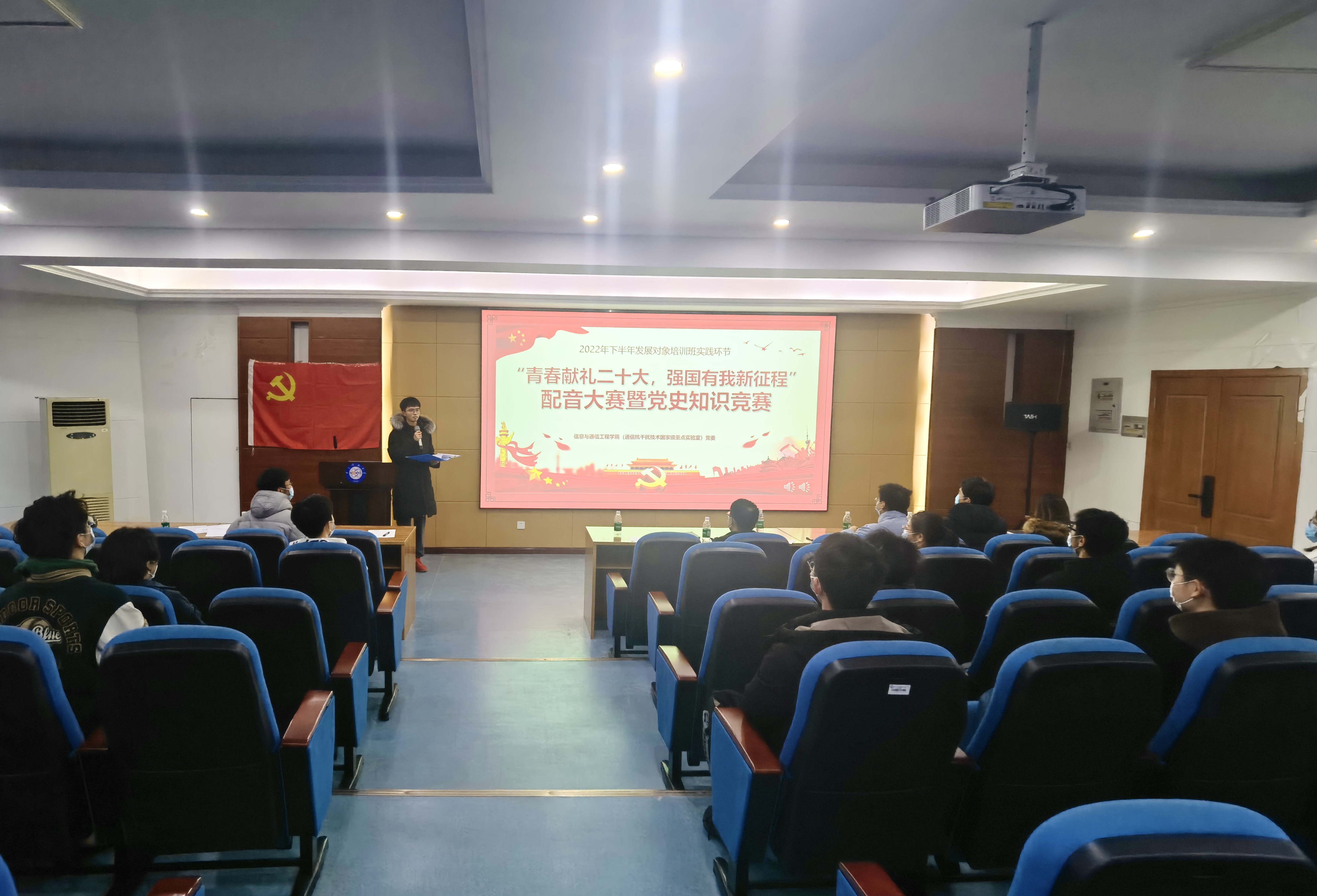 重温红色历程,弘扬中国精神,12月7日,信通分党校举行2022年下半年发展对象培训班实践环节之“青春献礼二十大,强国有我新征程”配音大赛暨党史知识竞赛。本次活动旨在深入推进党史学习教育,丰富党校实践活动的形式和内容。学院各年级辅导员代表和“信仰之光”大学生新思想宣讲团骨干成员参加本次活动。