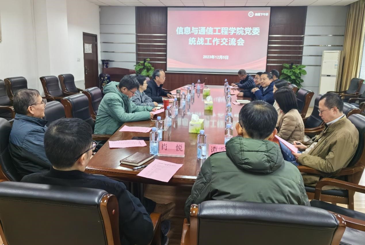 12月5日,信息与通信工程学院党委组织召开统战工作交流会,邀请党委统战部部长杨敏、副部长徐洁到会交流工作,信通党委书记冷甦鹏、副书记何佳、统战委员凌翔及信通学院和抗干扰全国重点实验室统战成员代表参加会议。