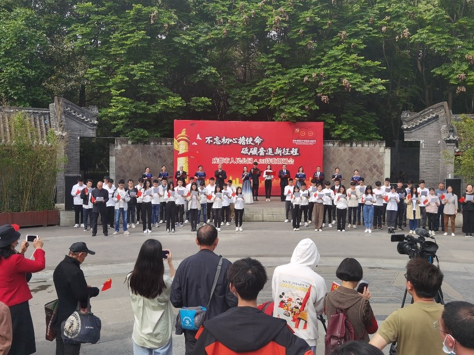 诗诵红色经典,承扬百年华章。为纪念中国共产党成立100周年,同时迎接第26个世界读书日,4月23日,信息与通信党委联合成都市人民公园党支部举办了以“不忘初心担使命,砥砺奋进新征程”为主题的诗歌朗诵会,活动地点为人民公园保路纪念广场。信息与通信工程学院研究生党建委员会、研究生会、通信工程系研究生第一、二、三、四党支部及抗干扰研究生第二党支部参与了本次活动。