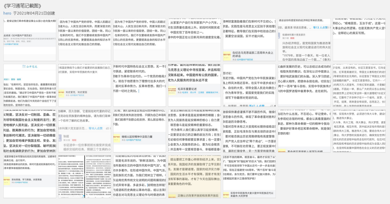 从4月15日开始,在为期近一个月的共读活动中,第六党支部积极参与,选择了《论中国共产党历史》这本书,全支部共读一本书籍。在每天阅读的同时,同学们做了很多读书笔记,记录下学习心得和所思所感。支部党员们分享学习笔记和心得,形成浓烈的党史学习交流氛围,打造线上的红色阵地。