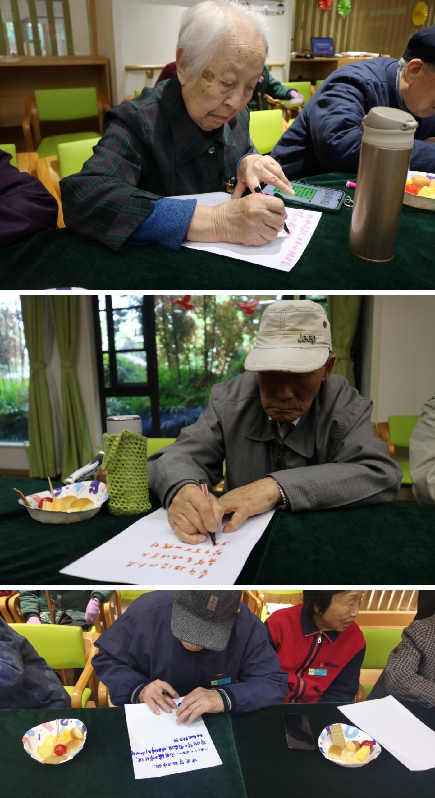 活动最后,老党员们纷纷用笔写下对党、对祖国的祝福,希望中国共产党越来越强大,希望祖国更加美好,也希望老百姓的生活越过越好。