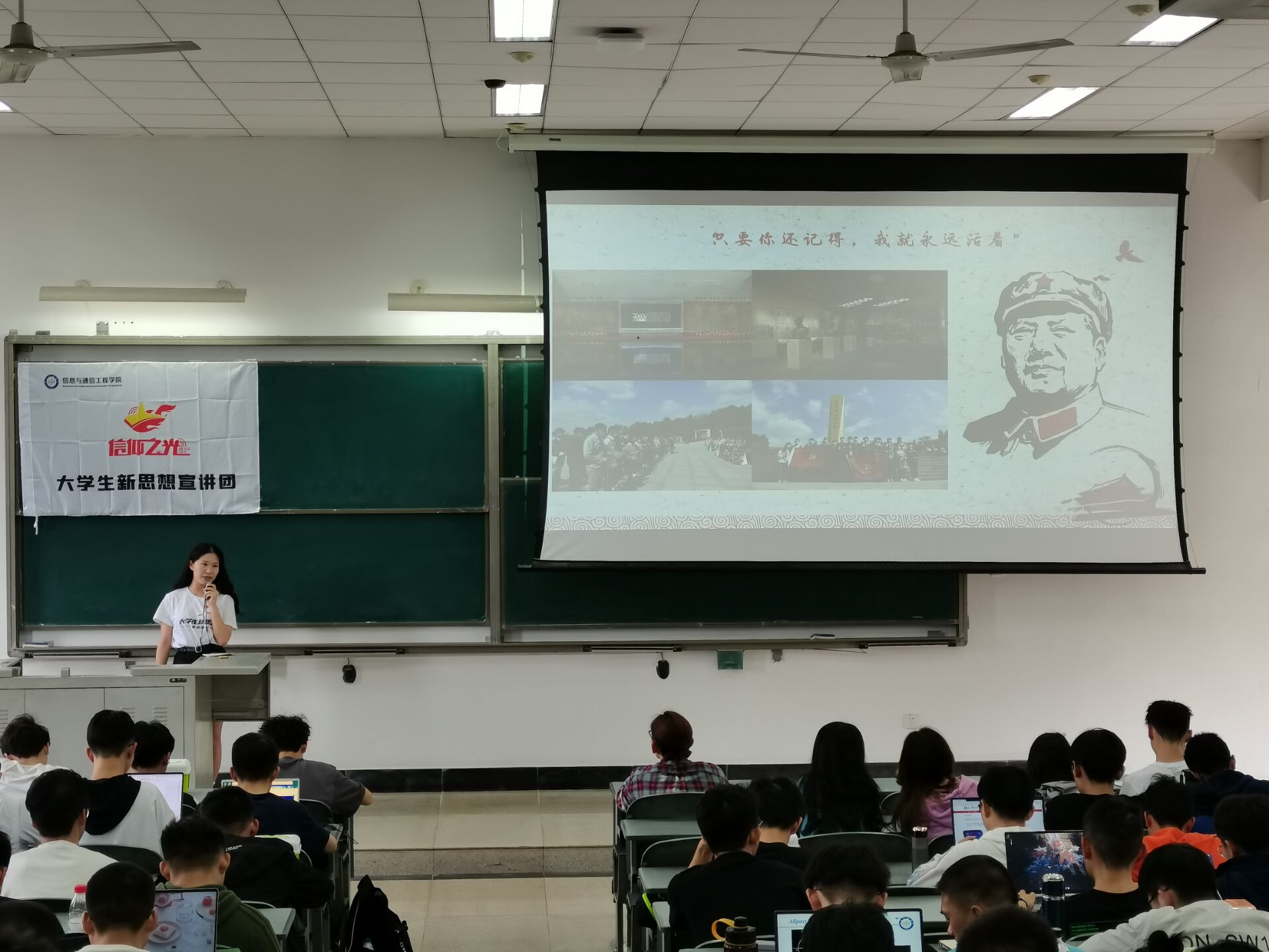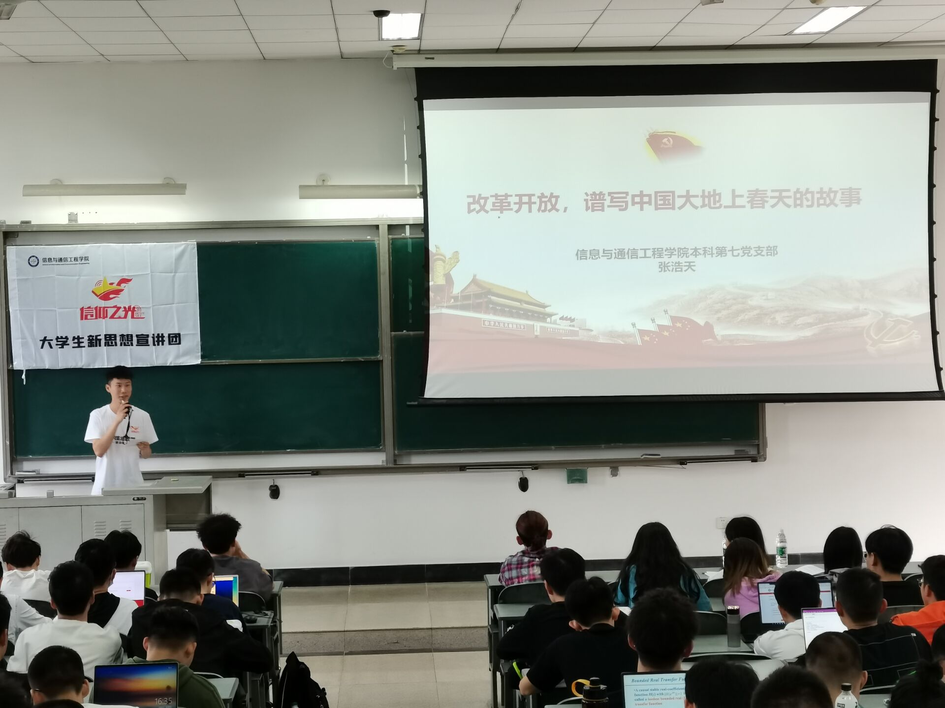 5月6日,为进一步落实推进党史学习教育,“5月的向日葵”辅导员工作室下属的“信仰之光”大学生新思想宣讲团,面向信通分党校第67期入党积极分子培训班300余名学员,开展专题辅导报告。宣讲团成员以中国外交、科技报国、抗美援朝、长征精神等为主题展开讲述和分享。