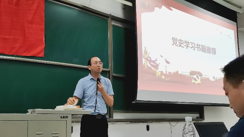 随后,马克思主义学院米华全老师上台为学员推荐党史书籍。米老师结合自己的阅读感悟,对《中国共产党简史》、《习近平论中国共产党历史》、《毛泽东、邓小平、江泽民、胡锦涛关于中国共产党的论述的摘编》和《习近平新时代中国特色社会主义学习问答》四本书的特点、侧重点以及推荐原因进行了详细讲解。