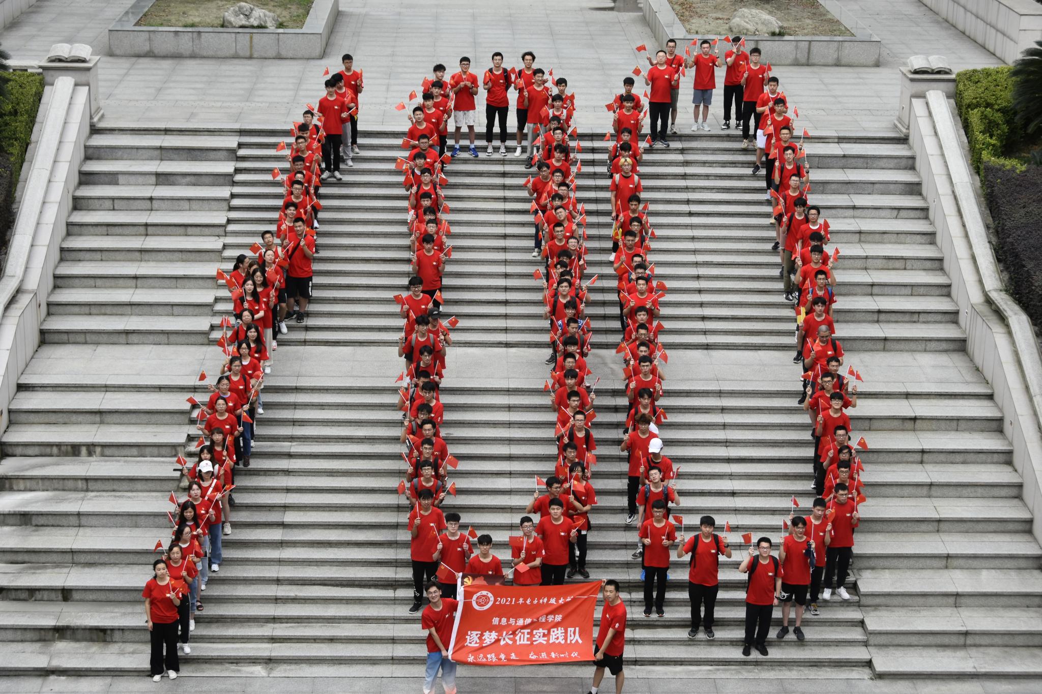 7月1日,信息与通信工程学院“逐梦长征实践队”开展了社会实践活动的出征合影。2021年的7月1日是中国共产党成立100周年纪念日,在这个伟大而有意义的日子,为了给中国共产党庆生,也为实践活动增彩,所有的实践队员在当日下午4:30在学校品学楼“求实求真,大气大为”的校训下集合并排成“100”字样,统一拍摄了实践出征合影。