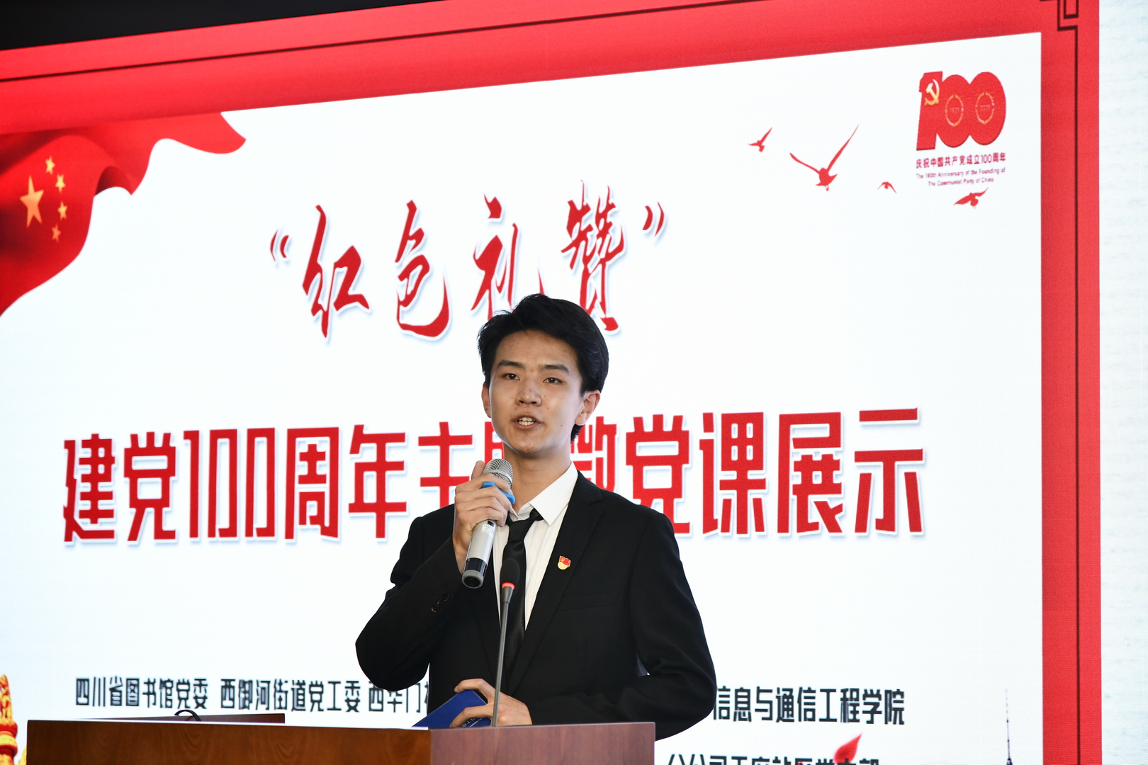 4月15日,实践队成员参加由信通学院与成都青羊区西华门社区党支部,联合四川省图书馆、成都市西华门社区等10余个党组织,共同举办“红色礼赞”建党100周年主题微党课展示活动。实践队队员们围绕科技报国、中国外交、交通强国、成电建校史、红船精神等主题,展现共产党风雨兼程100年的伟大成就。活动受央视频、中央党报等多家媒体报道。