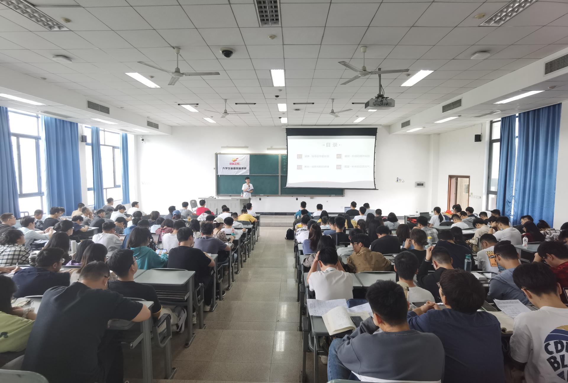 5月6日,实践队成员以中国外交、科技报国、抗美援朝、长征精神等为主题,面向信通分党校300余名积极分子展开理论宣讲。