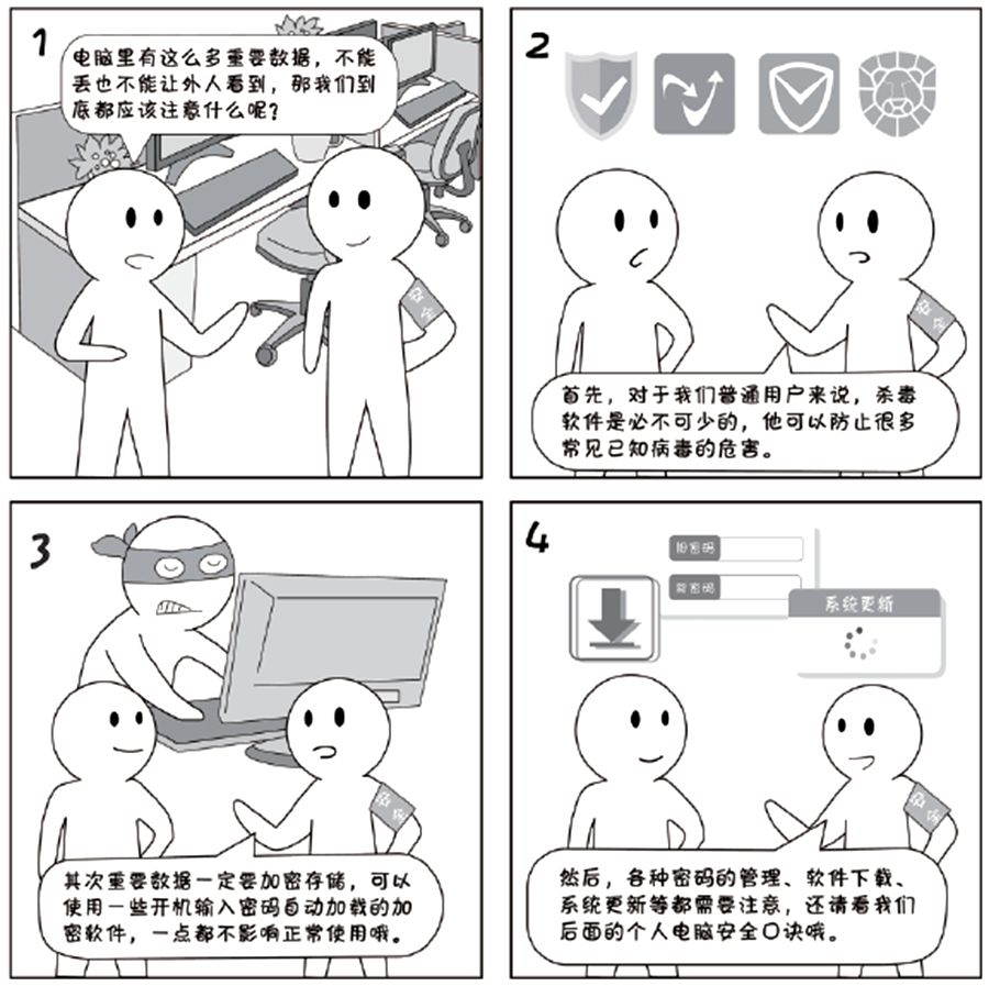 无论是企业,还是个人电脑安全防护,都与人们的很多信息和私有财产有着密不可分的关系,面对互联网的复杂形势,如何防护好电脑数据安全?以下这些漫画场景不妨仔细看看……