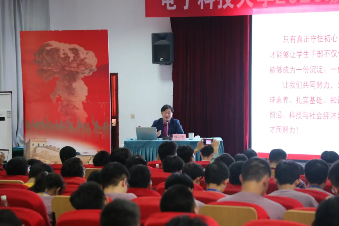 党委学生工作部部长钱云光在结营仪式上为同学们做了《新时代学生骨干培养与优秀班集体建设》的讲座,并寄语同学们将所思所想、所学所为与爱国之情、强国之志、报国之行统一起来,在今后的学习生活中继续发挥骨干的先锋模范作用,为民族复兴铺路架桥,为祖国建设添砖加瓦。