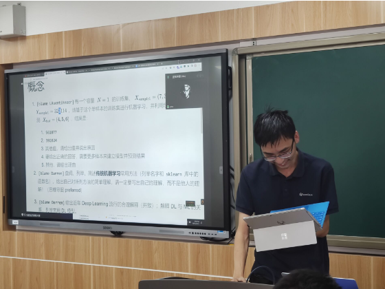 董孟帆学长对机器学习方向招新难题进行了深刻的讲解,引经据典,汇总融合了各方机器学习大牛的先进经验,为开放性的概念题提供了许多深刻的思路,并通过现场演示代码的方式,生动地逐步带领新入门的同学用简单的方式完成一道数据分析实验题,借此深化同学们的理解。