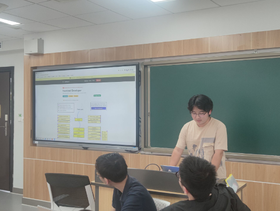 随后是张超魁学长对 C 语言基础、操作系统方面以及后端与 DevOps 相关内容的分析讲解。张超魁学长结合同学们的课程及学校的培养方案,在讲解招新题目、点评同学回答的同时也深入分析题目中的知识点,指出在课程学习中应注意的地方,并指导同学们在分析与解决问题时应采取的思路。张超魁学长将理论与实践相结合,以深化同学们的理解。