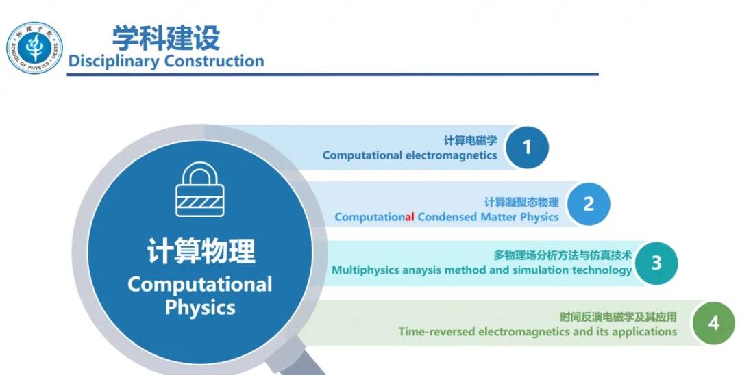 电子科技大学物理学院组建于2018年1月。现设有应用物理系、电子信息科学与技术系、工科物理教学部、应用物理研究所、无线电物理研究所、凝聚态物理研究所、光信息与光子学研究所、理论物理研究所等8个教学科研单位。