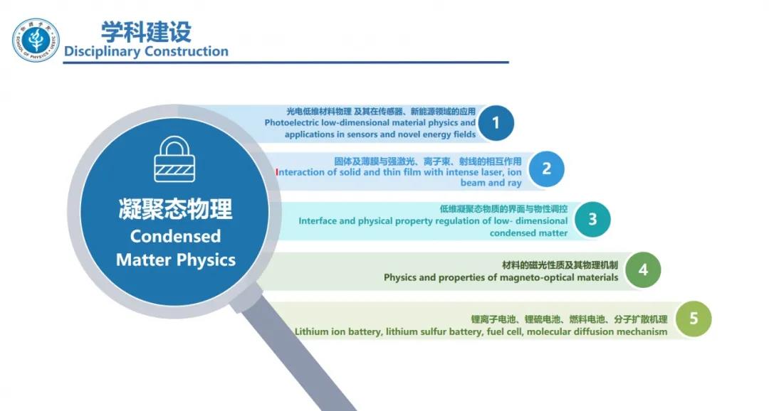 学院学科特色鲜明,优势突出。学院现有物理学一级学科博士点及博士后流动站,下设无线电物理、光学、等离子体物理、凝聚态物理、理论物理、等五个二级学科,并按物理学和电子信息两个专业进行研究生招生。目前,物理学学科进入国际ESI全球排名前6.1‰。