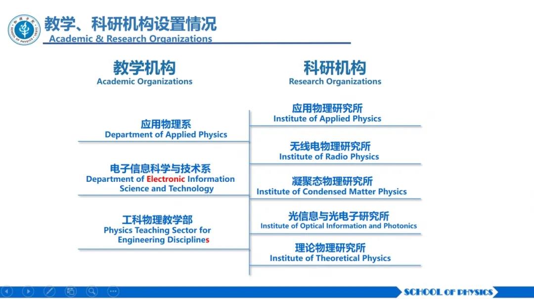 学院科研条件完备,成果丰硕。通过“211工程”、 “985工程”和“双一流”建设,尤其是通过“重点扶持学科计划”、“数理学科群建设计划”,持续支持物理学学科建设。学院能够支撑微电子学与集成电路、计算电磁学及应用、时域电磁学、电磁辐射与散射、极端条件下材料的物理性质、空间光学等科学研究;承担了以国家重大专项、国家973计划、国家863计划、ITER计划、国家自然科学基金重点项目以及国际合作项目等为代表的各类国家级科研项目。