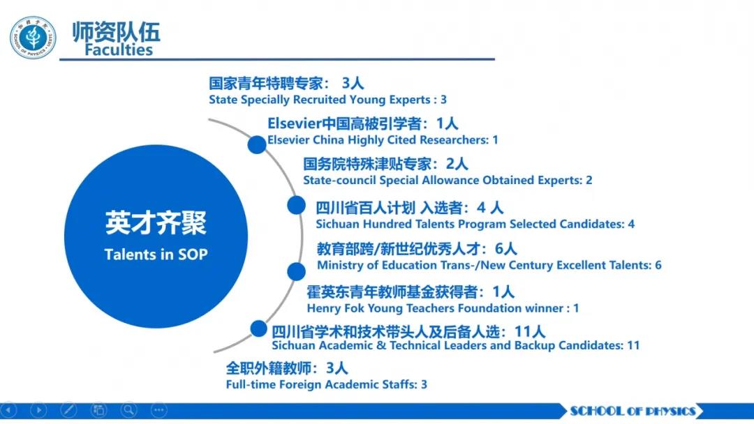 学院师资力量雄厚,结构合理。现有教职工120余人,其中具有正高级职称33人,副高级职称52人,博士生导师34人。拥有青年专家3人、Elsevier中国高被引学者1人、国务院特殊津贴专家2人、四川省百人计划4人、教育部跨/新世纪优秀人才6人,四川省学术和技术带头人及后备人选11人,霍英东青年教师基金获得者1人,全职外籍教师3人。
