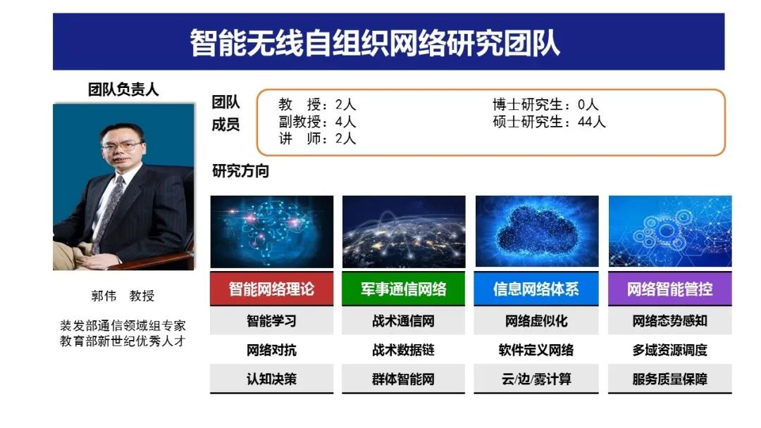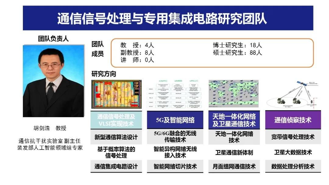 实验室的研究课题涉及内容包括但不限于:5G/6G以及未来移动通信;60G赫兹与太赫兹等新频段通信;多波段自适应扩跳频通信;综合与智能抗干扰通信;隐匿与抗截获通信;中继与协同通信;自组织网与无线专用网;传感器网与物联网;卫星通信组网;认知无线电与智能认知网;信道编码与调制的联合优化;非协作通信信号处理;无线定位;密码与身份认证及其应用;赛博目标识别与赛博安全;片上信息处理系统;专用通信芯片等。